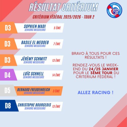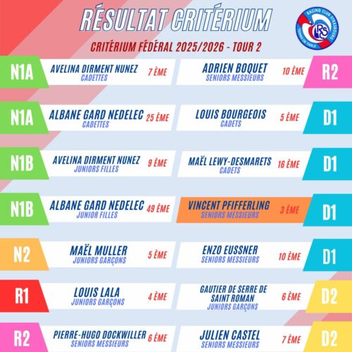 Ce week-end c’était le 2nd tour du criterium, voici les différents résultats pour les Racingmen !