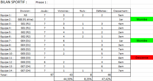 C’est donc un bilan de 8 victoires et 6 défaites, avec des défaites assez logiques en départemental au vu des nombreuses absences…